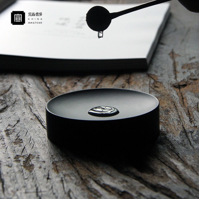 砚台高档文房四宝安徽宣砚天然原石圆形带盖书法国画小楷专用